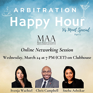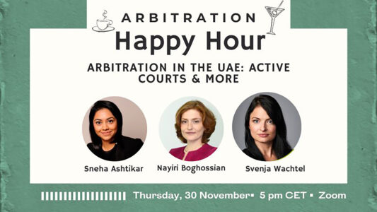 Arbitration Happy Hour is a monthly virtual (or hybrid) get-together launched by Svenja Wachtel and Sneha Ashtikar.